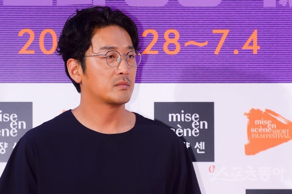 배우 하정우가 28일 서울 용산구 아모레퍼시픽 신본사 2층 로비에서 열린 ‘제17회 미쟝센 단편영화제’ 개막식 포토월에 참석해 포즈를 취하고 있다.
