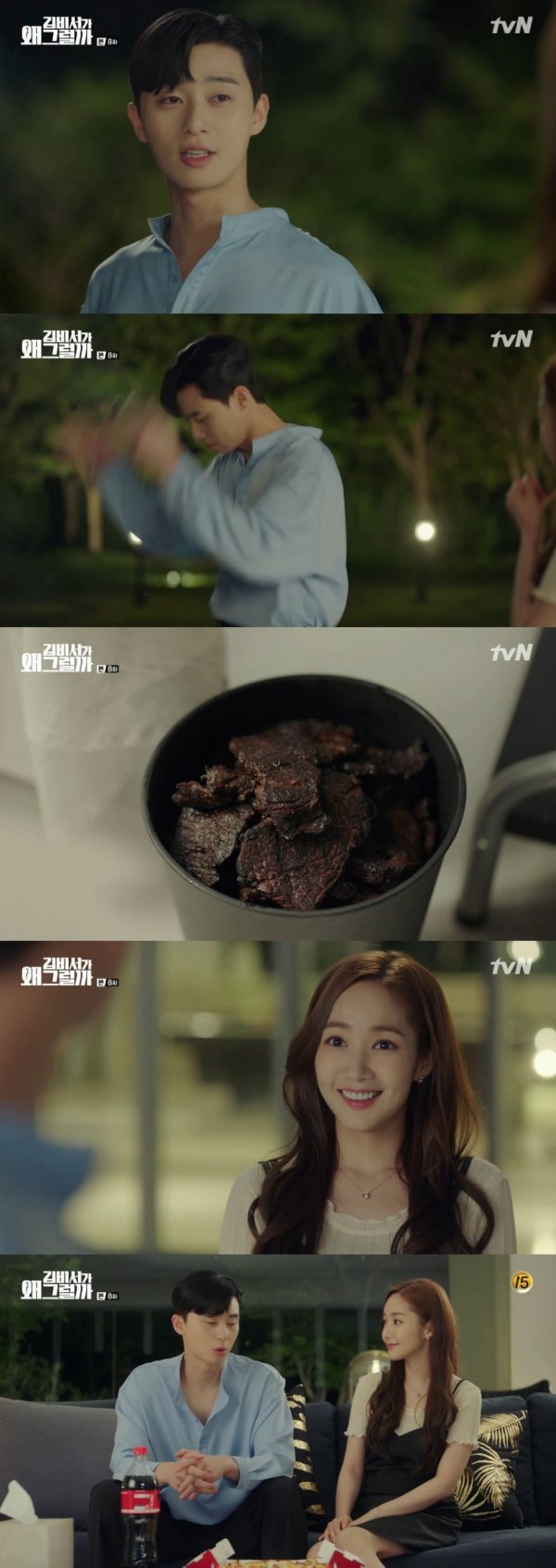 28일 오후 방송된 tvN 수목드라마 ‘김비서가 왜 그럴까’ (이하 ‘김비서’)에서는 김미소(박민영 분)가 이영준(박서준 분)의 집으로 초대돼 방문하는 장면이 그려졌다.