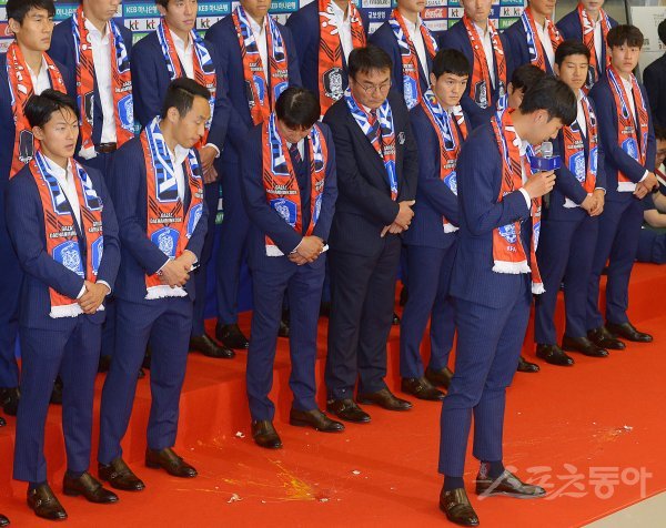 ‘2018 러시아 월드컵’ 일정을 마친 대한민국 축구 국가대표팀이 29일 인천국제공항 제2여객터미널을 통해 입국했다.