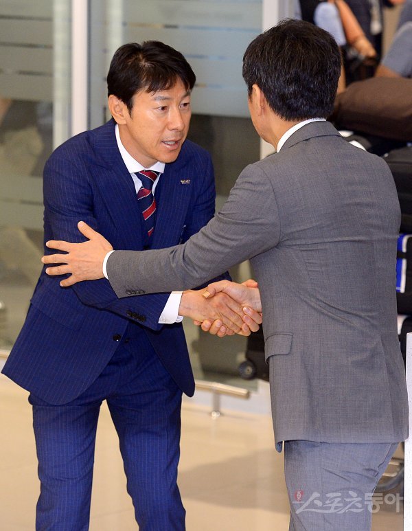 정몽규 회장과 악수 나누는 신태용 감독