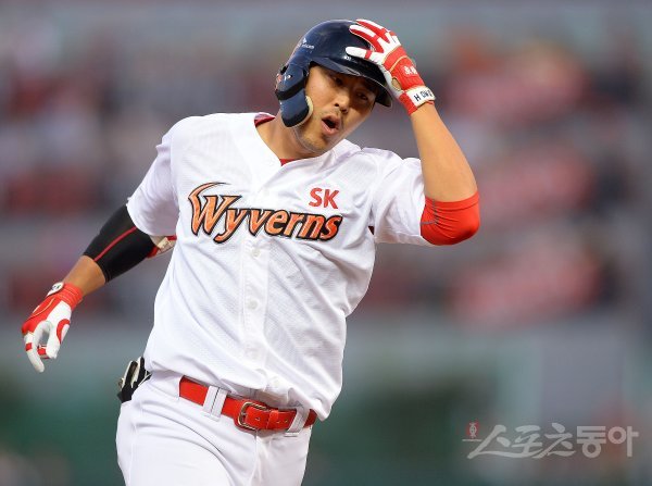 29일 인천 SK행복드림구장에서 ‘2018 신한은행 마이카 KBO리그’ SK 와이번스와 LG 트윈스의 경기가 열렸다. 4회말 2사 2루에서 SK 한동민이 LG 선발 소사를 상대로 투런포를 터뜨린 후 세리머니를 펼치며 그라운드를 돌고 있다.