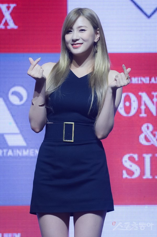 걸그룹 에이핑크 오하영이 2일 서울 광진구 예스24 라이브홀에서 열린 일곱 번째 미니앨범 ‘ONE & SIX’ 발매 기념 쇼케이스에서 포즈를 취하고 있다.