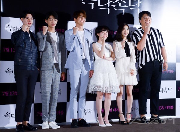 6일 서울 용산구 CGV 용산아이파크몰에서 열린 영화 ‘속닥속닥’ 언론시사회 및 기자간담회에서 주연 배우들이 포즈를 취하고 있다.