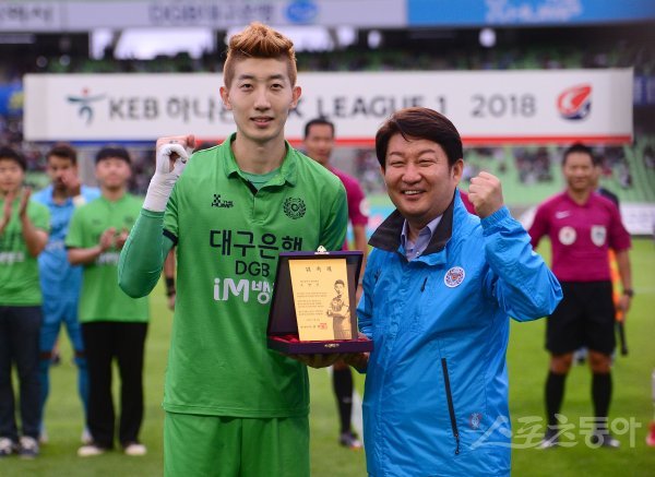 8일 대구스타디움에서 열린 프로축구 ‘2018 KEB 하나은행 K리그1(클래식)’ FC서울과 대구FC 경기 전 대구 조현우가 대구광역시 홍보대사에 위촉되고 있다.