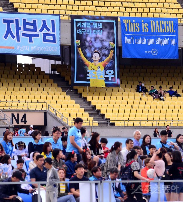 8일 대구스타디움에서 열린 프로축구 ‘2018 KEB 하나은행 K리그1(클래식)’ FC서울과 대구FC 경기에서 대구 조현우의 대형 플래카드가 걸려 있다.