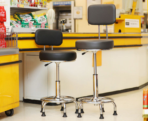이마트가 16일부터 8월24일까지 전국 이마트와 트레이더스 점포의 계산대 의자를 신형으로 교체한다. 새 의자의 높이는 77cm로 기존보다 20%가량 커졌으며 등받이 높이도 37cm로 길어졌다. 기존 허리 높이의 등받이를 대폭 올려 휴게 시 편안하게 쉴 수 있도록 했고 고객이 카트에 싣고 지나가는 상품이 계산대 직원과 부딪히지 않도록 등받이 크기를 확대했다.