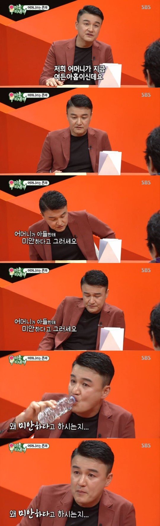 이어 “어머니가 많이 아프다. 정신도 혼미하고 누워 있다가 혼자 못 잃어날 정도다. 정신이 혼미하다가도 자식들은 다 알아본다. 나를 봐도 '멋있다' '잘생겼다' '요즘 무슨 드라마하냐'고 묻는다”며 눈물을 흘렸다.