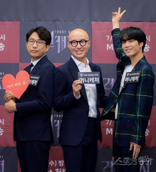 9일 서울 마포구 상암동 스탠포드호텔 서울에서 열린 Mnet ‘러브캐처’ 제작발표회에서 PD와 출연진들이 포즈를 취하고 있다.
