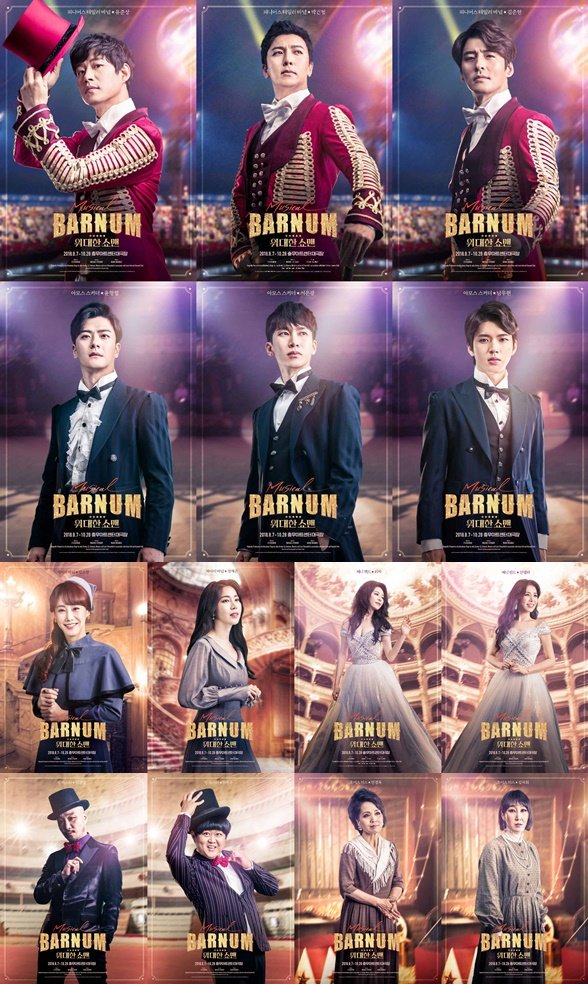 뮤지컬 ‘바넘 : 위대한 쇼맨’이 오는 8월 7일 국내 초연 무대의 개막을 앞두고, 캐릭터와 완벽한 싱크로율을 보여 주는 캐릭터 포스터와 메인 스팟 영상을 공개했다.