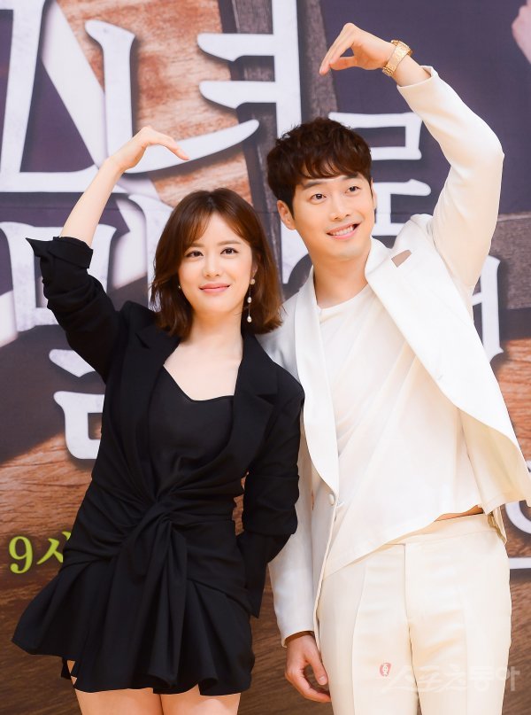 배우 양진성과 김재원(오른쪽)이 13일 서울 양천구 목동 SBS에서 열린 새 주말특별기획 ‘그녀로 말할 것 같으면’ 제작발표회에 참석해 포즈를 취하고 있다.