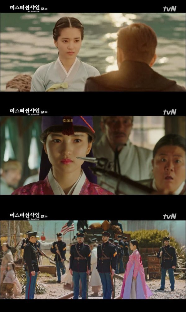 미군복을 입은 유진을 의아하게 여긴 애신은 이내 곧 그가 조선인이 아닌 미국인임을 알게 되었고, 로건 총격 사건부터 현재 지금 자신이 마주한 이 순간 모두가 앞으로 자신과 유진 사이에 어떠한 영향을 끼치게 될 지 혼란 속에서 엔딩을 맞이하게 됐다. 과연, 애신과 유진은 적 또는 아군 중 어떠한 길을 걷게 될 것인지 호기심을 증폭시켰다. ‘미스터 션샤인’은 매주 토,일 밤 9시에 방송된다.