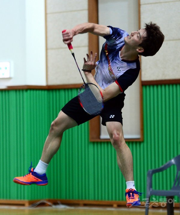 스포츠동아와 동아일보사가 주최하고 한국초등학교배드민턴연맹, 한국중고배드민턴연맹, 한국대학배드민턴연맹이 공동 주관하는 ‘이용대 올림픽 제패기념 2018 화순 전국 초·중·고·대학교 대항 배드민턴 선수권대회’가 15일 전라남도 화순 이용대 체육관에서 열렸다. 이승훈(경희대)과 박설현(백석대)의 남자대학 단식 경기에서 이승훈이 공격을 펼치고 있다.