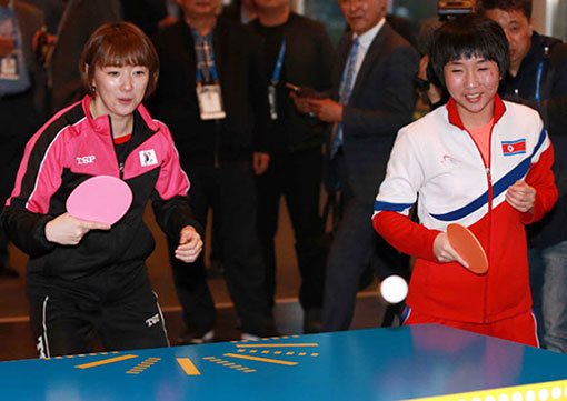대한탁구협회는 “17일부터 22일까지 대전에서 펼쳐지는 국제탁구연맹(ITTF) 월드투어 플래티넘 2018 신한금융 코리아오픈에서 남과 북이 다시 한 팀을 이룬다”고 15일 밝혔다. 남녀선수 16명(각 8명)을 포함한 25명의 북한 선수단은 대회 참가를 위해 15일 인천국제공항을 통해 입국했다. 북한 탁구 선수단이 국내 대회에 출전하는 것은 이번이 처음이다.