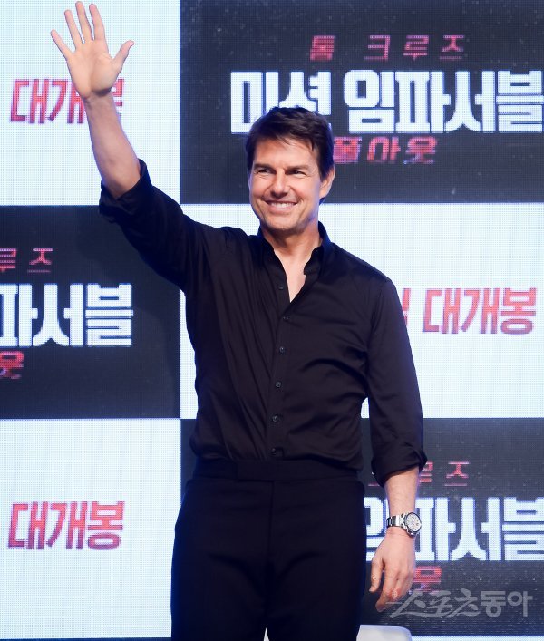 배우 톰 크루즈가 16일 서울 송파구 잠실 롯데호텔 월드 크리스탈볼룸에서 열린 ‘미션 임파서블 : 폴아웃’ 내한 기자 간담회에서 포즈를 취하고 있다.