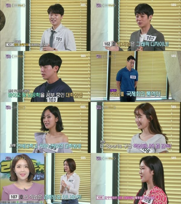 이 날 가장 먼저 8인의 자기소개를 통해 신상이 밝혀졌다. 용산 편부터는 출연진의 실명도 공개됐다. 25살로 8명의 출연자 중 가장 어린 남자 101호는 영어교육 회사 CEO 이지호였다. 102호는 32살 이재민으로 미대 졸업 후 국민일보에서 그래픽디자이너로 일하고 있었다. 103호는 원동빈, 28살인 그는 카이스트 학생 모델이자 바이오 및 뇌공학으로 석사 중인 대학원생이었다. 37살로 최연장자인 104호 라이언 킴은 성우, 라디오DJ, 통역사, 수능 영어 강사, 영어 유치원 원장까지 다양한 직업으로 자신의 능력을 어필해 눈길을 끌었다.