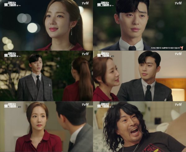 19일 방송된 tvN 수목드라마 ‘김비서가 왜 그럴까’(극본 백선우 최보림, 연출 박준화) 14회에서는 비밀 연애가 들통난 이영준(박서준)과 김미소(박민영)의 모습이 그려졌다.