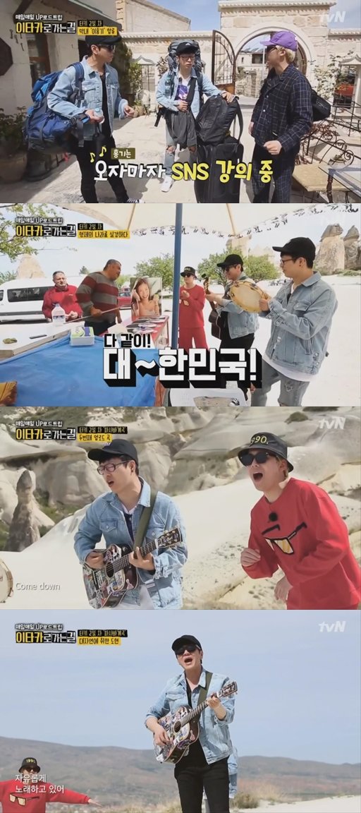 22일 방송된 tvN ‘이타카로 가는 길’ 2회에서는 터키 앙카라를 떠나 카파도키아로 향하는 여정이 그려졌다. ‘이타카로 가는 길’은 오직 SNS에 업로드한 노래 영상 조회 수만으로 얻은 경비로 터키에서 그리스 이타카섬까지 가는 여정을 담는 프로그램으로, 이날은 이홍기가 새롭게 합류, 윤도현, 하현우와 함께 신선한 로커 조합을 완성하며 시청자들의 폭발적인 관심을 유발했다.