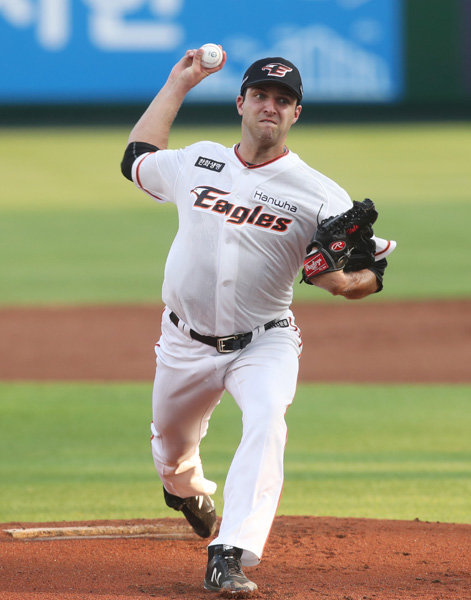 한화가 지난 13일 총액 50만 달러에 영입한 대체 선수 우완 데이비드 헤일(31)이 24일 대전 KIA전에서 첫 선을 보였다.
