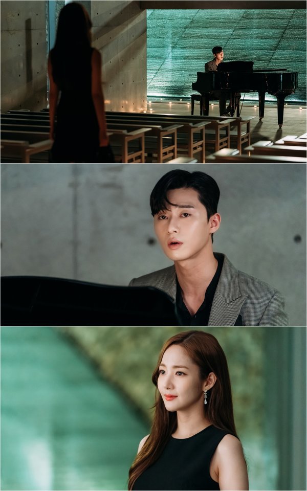 그런 가운데, 미소 아버지의 반대에도 불구하고 ‘로맨틱한 프러포즈’를 준비하는 영준과 이에 감동한 미소의 모습이 포착돼 설렘을 자아낸다. 특히 영준은 검은색 피아노를 직접 치며 감미로운 세레나데를 부르고 있는 듯해 심장을 두근거리게 한다. 이미 미소만을 위한 자장가로 ‘두 사람’을 불러주며 ‘고막남친’ 부회장님에 등극한 영준. 과연 그가 어떤 곡을 프러포즈송으로 선택 했을지 궁금증을 한껏 고조시킨다.