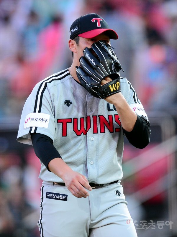 3회까지 3실점을 허용한 LG 선발 여건욱이 이닝 종료 후 아쉬워하고 있다.