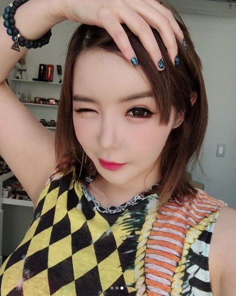 사진 속 박봄은 짧은 머리와 진한 메이크업을 한 채 귀여운 표정을 짓고 있다. 팬들을 향해 윙크를 하기도 했다.