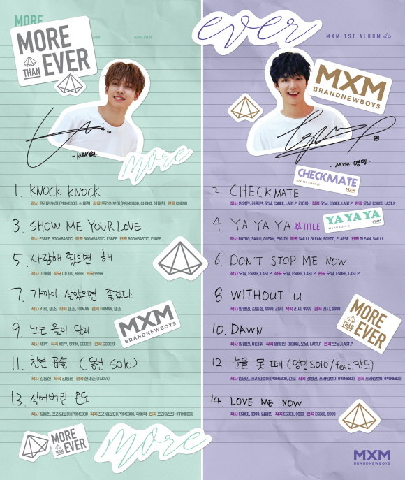 MXM의 첫 정규앨범 ‘MORE THAN EVER’의 발매 카운트다운이 시작되며 팬들의 기대감이 점점 고조되고 있는 가운데 31일 정오를 기점으로 대망의 첫 정규앨범 트랙리스트가 전격 공개됐다.