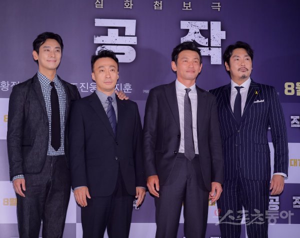 31일 서울 용산구 CGV 용산아이파크몰에서 열린 영화 ‘공작’ 언론시사회 및 기자간담회에서 주연 배우들이 포즈를 취하고 있다.