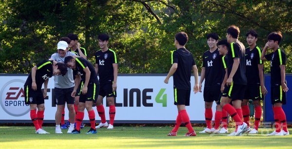 2018 자카르타-팔렘방 아시안게임에 출전하는 남자 축구대표팀이 1일 파주 축구국가대표트레이닝센터(NFC)에서 첫 훈련을 가졌다.