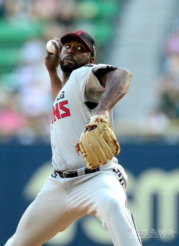 선발 투수로 등판한 LG 소사가 역투하고 있다.