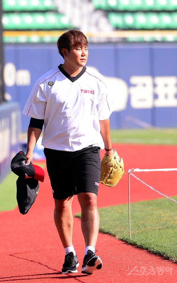 SK에서 LG로 트레이드 되어 온 문광은이 훈련을 마치고 더그아웃으로 들어가고 있다.