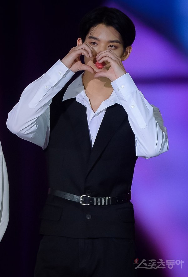 그룹 워너원의 배진영이 1일 서울 고척스카이돔에서 열린 ‘케이스타 2018 코리아 뮤직 페스티벌‘의 포토타임에 참석해 포즈를 취하고 있다.