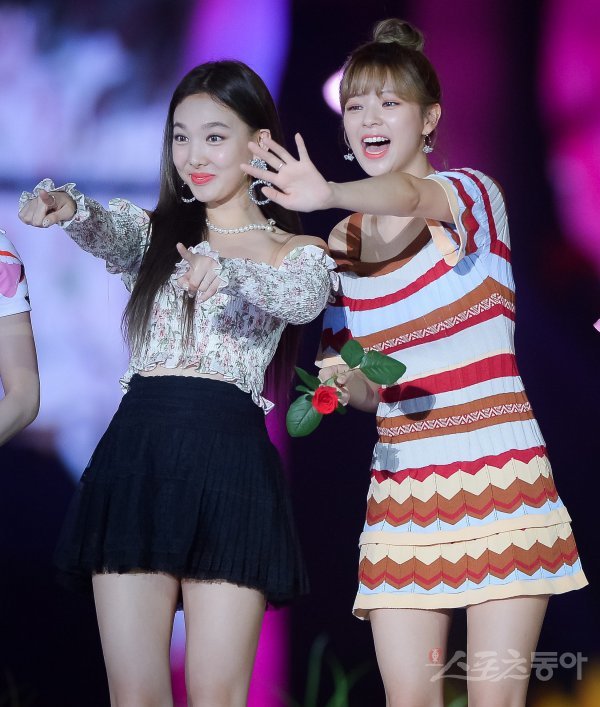 그룹 트와이스의 나연과 정연(오른쪽)이 1일 서울 고척스카이돔에서 열린 ‘케이스타 2018 코리아 뮤직 페스티벌‘의 포토타임에 참석해 포즈를 취하고 있다.