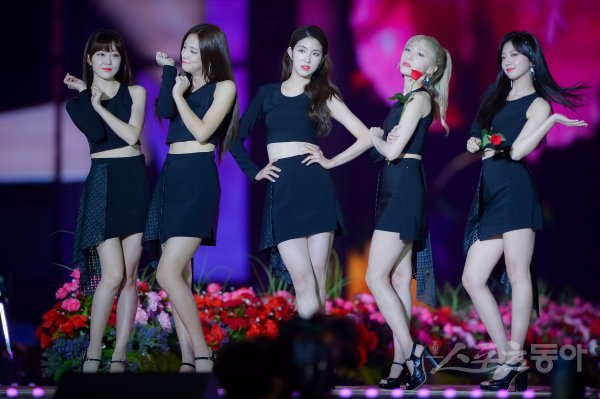 그룹 라붐의 유정, 솔빈, 지엔, 소연, 해인(왼쪽부터)이 1일 서울 고척스카이돔에서 열린 ‘케이스타 2018 코리아 뮤직 페스티벌‘의 포토타임에 참석해 포즈를 취하고 있다.