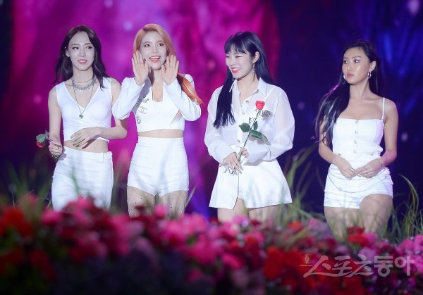 그룹 마마무가 1일 서울 고척스카이돔에서 열린 ‘케이스타 2018 코리아 뮤직 페스티벌‘의 포토타임에 참석하기 위해 입장하고 있다.