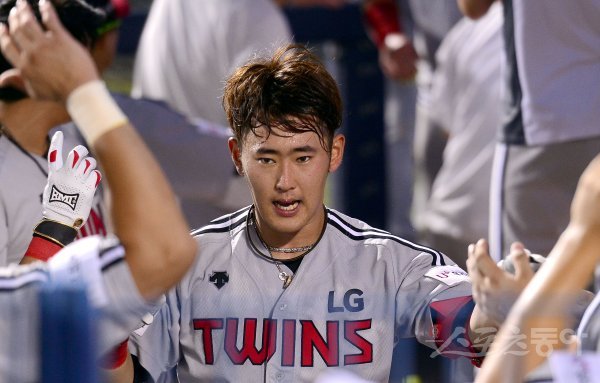 6회초 무사 1루 LG 정주현이 다시 동점을 만드는 좌월 투런 홈런을 날리고 있다.