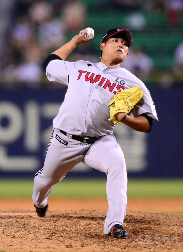 SK에서 트레이드되어 온 LG 문광은이 역투하고 있다.