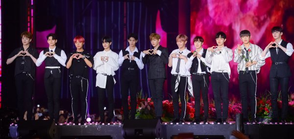 워너원이 1일 서울 고척스카이돔에서 열린 ‘케이스타 2018 코리아 뮤직 페스티벌’ 포토타임에서 포즈를 취하고 있다.