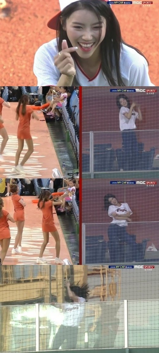 특히 미주는 시구를 마친 후 관중석에서 경기를 즐겼다. 씨스타 '러빙 유'에 맞춰 열정적으로 안무를 추며 응원하는 모습이 중계화면에 포착돼 화제였다. 음악이 끝나도 열정적인 응원과 안무가 계속돼 웃음을 안겼다.
