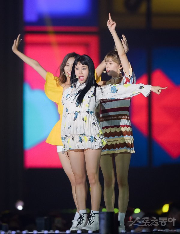 트와이스가 1일 서울 고척스카이돔에서 열린 ‘케이스타 2018 코리아 뮤직 페스티벌’에서 열정적인 무대를 펼치고 있다.