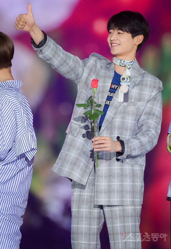 샤이니 민호가 2일 서울 고척스카이돔에서 열린 ‘케이스타 2018 코리아 뮤직 페스티벌’ 플라워 카펫에서 팬들에게 인사를 하고 있다.