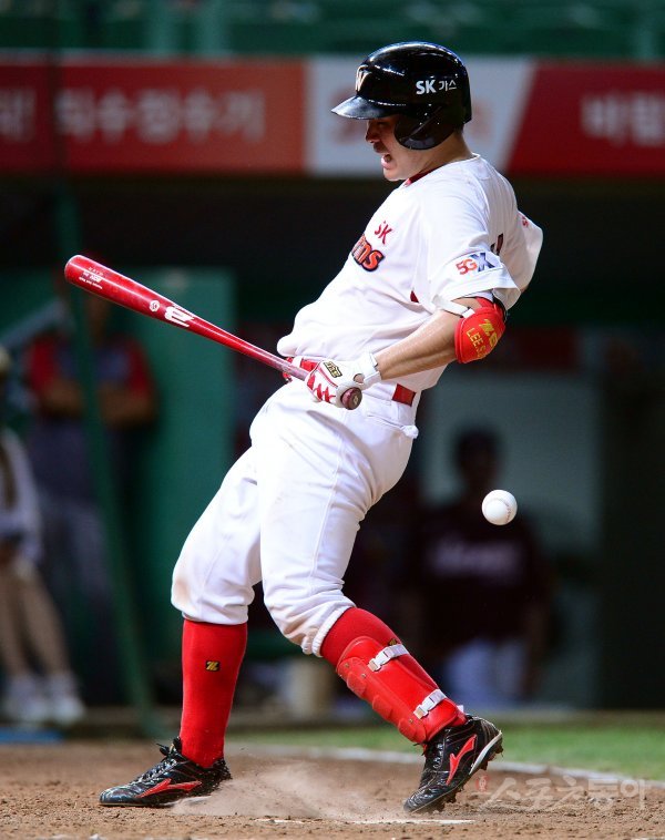 5회말 2사에서 SK 이재원이 넥센 신재영의 볼에 맞고 있다.