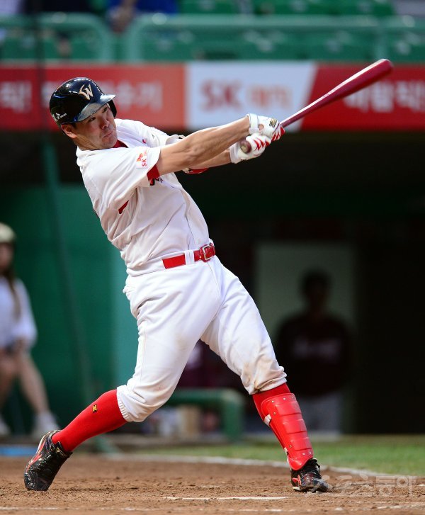 4회말 무사에서 SK 이재원이 넥센 선발 신재영을 상대로 중월 솔로 홈런을 쏘아 올리고 있다.