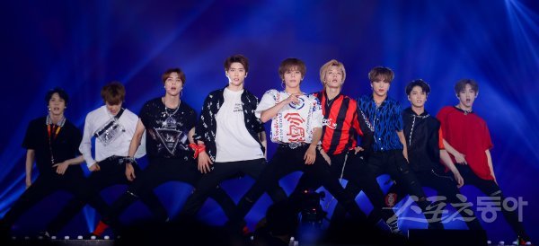 NCT127이 2일 서울 고척스카이돔에서 열린 ‘케이스타 2018 코리아 뮤직 페스티벌’에서 열정적인 무대를 펼치고 있다.