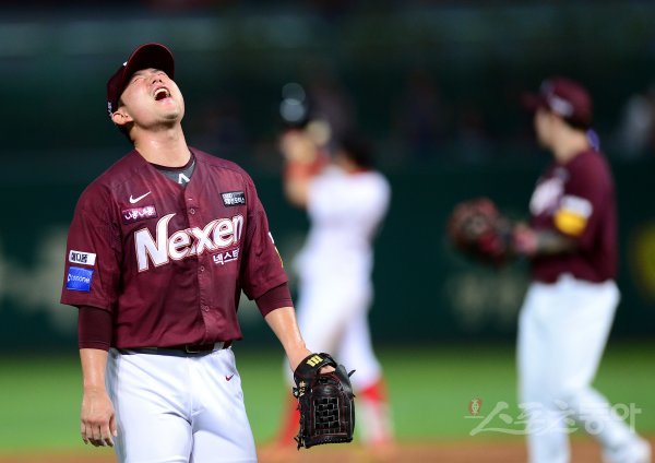 9회말 2사 3루에서 SK 노수광을 아웃시킨 넥센 마무리 김상수가 포효하고 있다.