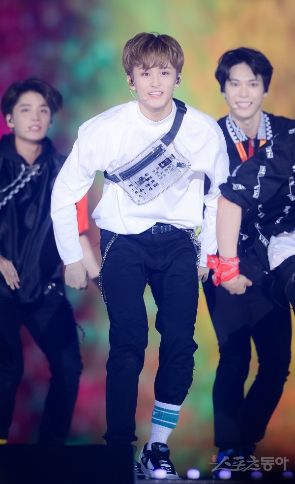 NCT127의 마크가 2일 서울 고척스카이돔에서 열린 ‘케이스타 2018 코리아 뮤직 페스티벌’에서 열정적인 무대를 펼치고 있다.