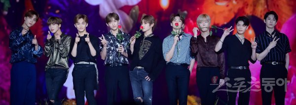 NCT127이 2일 서울 고척스카이돔에서 열린 ‘케이스타 2018 코리아 뮤직 페스티벌’ 플라워 카펫에서 포즈를 취하고 있다.