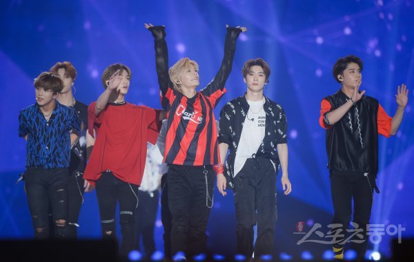 NCT127이 2일 서울 고척스카이돔에서 열린 ‘케이스타 2018 코리아 뮤직 페스티벌’에서 열정적인 무대를 펼치고 있다.