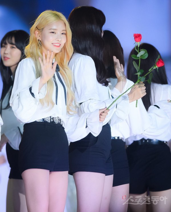 구구단 나영이 2일 서울 고척스카이돔에서 열린 ‘케이스타 2018 코리아 뮤직 페스티벌‘을 마친 후 팬들에게 인사를 하고 있다.
