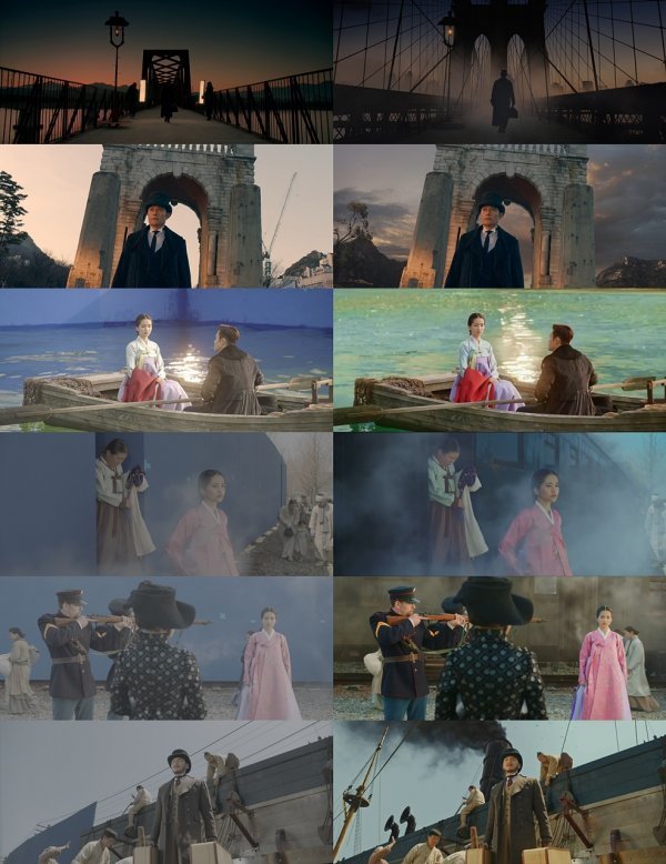 또한 1회에서는 미국에 도착한 어린 유진이 감탄하면서 바라본 미국의 기차와 건물들, 미국 항구의 모습과 유진이 다리 밑에서 댕기 머리를 자르는 장면에서의 바다 풍경 등 어린 유진의 눈에 비친 미국의 모습이 실감나게 담겼던 바 있다. 하지만 이 모든 미국 장면은 미국이 아닌, 국내에서 촬영됐다. 세트와 CG로 ‘역대급 장면’을 완성하면서 극찬을 받았다.