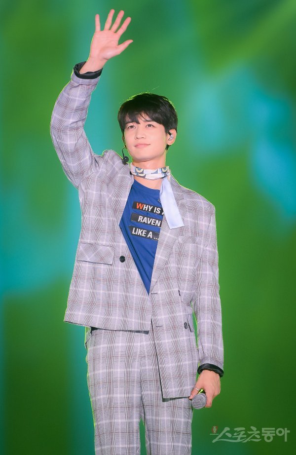 샤이니 민호가 2일 서울 고척스카이돔에서 열린 ‘케이스타 2018 코리아 뮤직 페스티벌’에서 팬들을 향해 인사를 하고 있다.